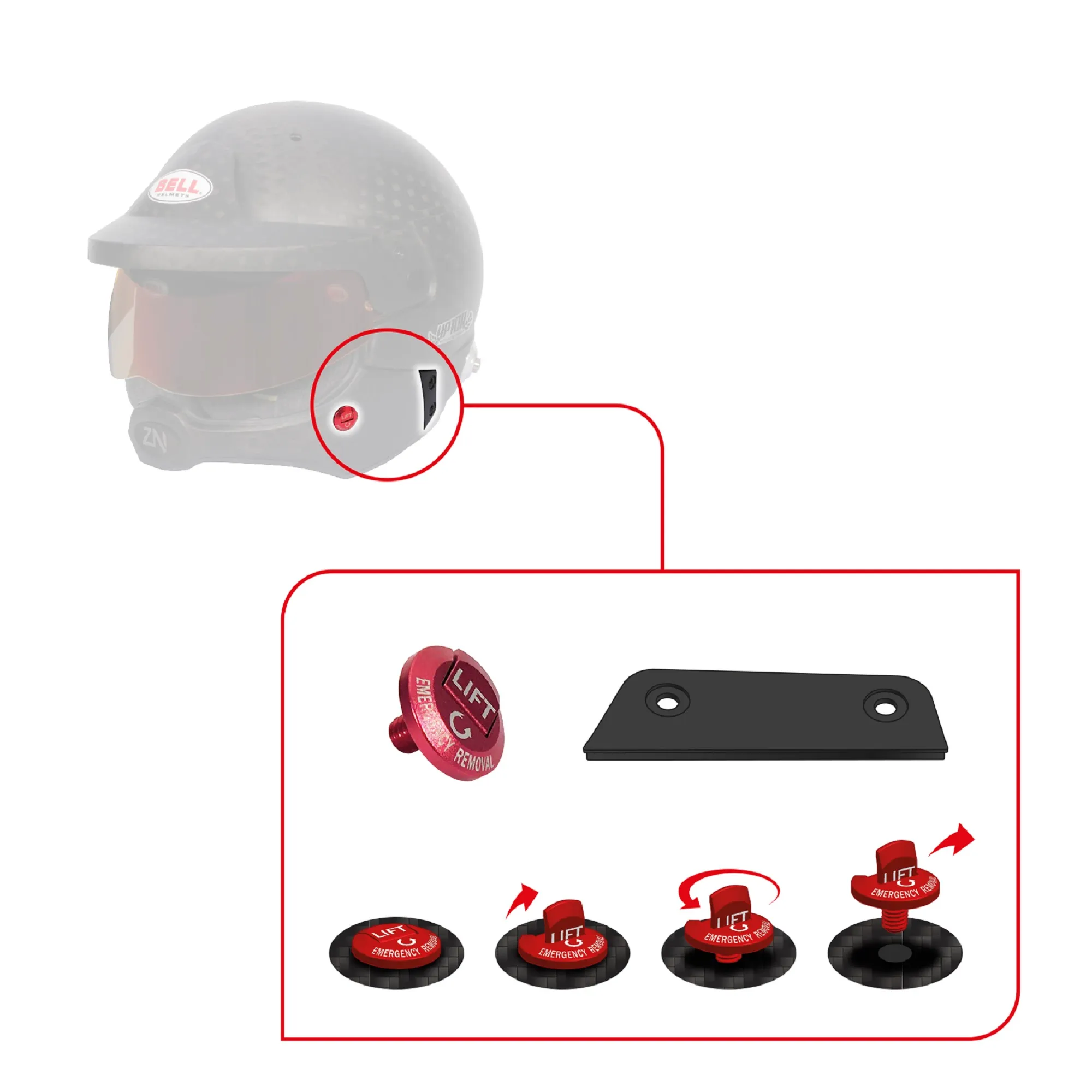 Σχεδιασμένο ειδικά για να ταιριάζει στη μπάρα πηγουνιού που χρησιμοποιείται στα κράνη Bell HP10 Rally, Mag 10 Rally Carbon και Mag 10 Pro, αυτό το κιτ βιδών επιτρέπει την αφαίρεση της μπάρας πηγουνιού γρήγορα και εύκολα, χωρίς την ανάγκη εργαλείων. Αυτό το καθιστά ιδανικό για καταστάσεις έκτακτης ανάγκης όπου μπορεί να απαιτείται πρόσβαση από γιατρούς ή παραϊατρικό προσωπικό.