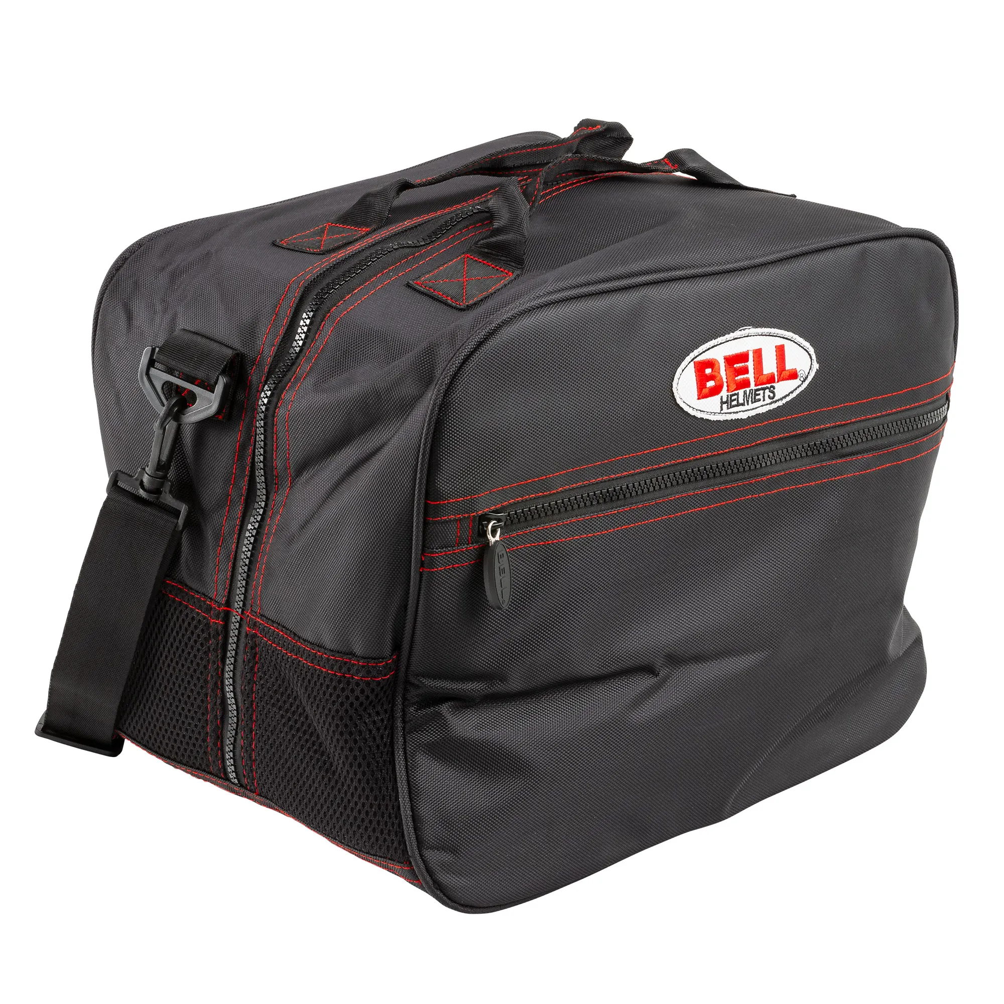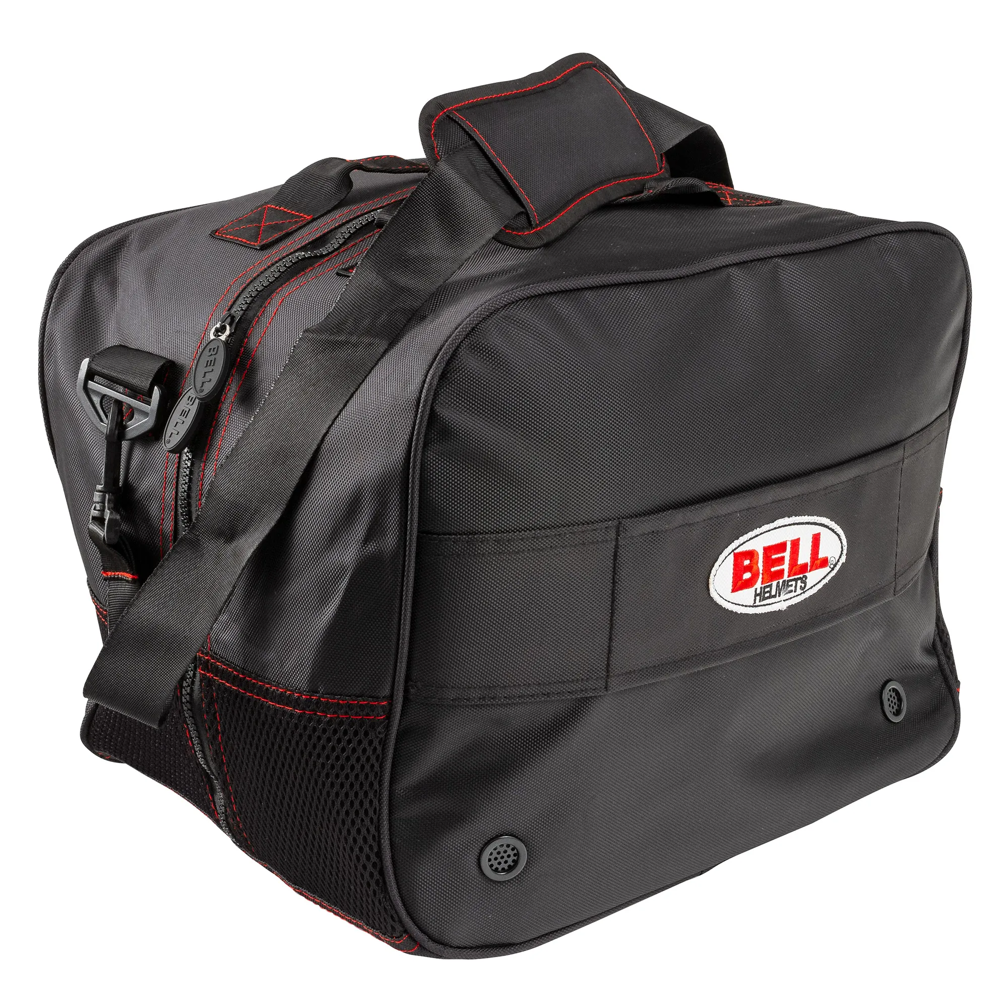 Η τσάντα κράνους διαθέτει ένα ανθεκτικό εξωτερικό με στιβαρές λαβές μεταφοράς και το σήμα της Bell, ενώ το εσωτερικό περιέχει ένα παραγεμισμένο υλικό για να διασφαλίσει την προστασία του κράνους κατά τη μεταφορά ή όταν δεν χρησιμοποιείται σε μια εκδήλωση.
