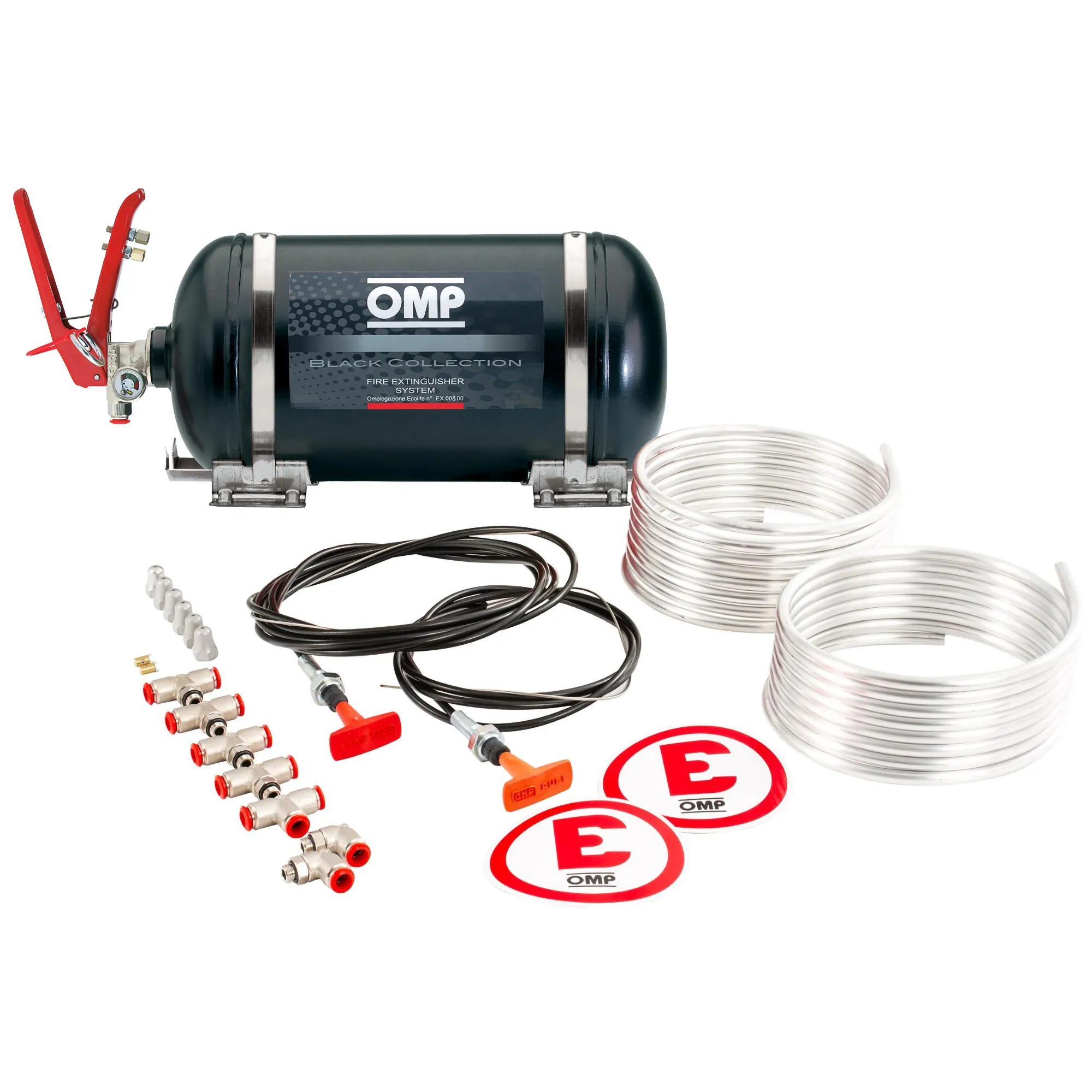 Η μαύρη συλλογή πυροσβεστήρων από την OMP προσφέρει φανταστική σχέση ποιότητας-τιμής στους ανταγωνιστές όπου το βάρος δεν αποτελεί πρόβλημα. Αυτό το σύστημα χωρητικότητας 4,25 λίτρων χρησιμοποιεί μια χαλύβδινη φιάλη και είναι γεμάτο με το πυροσβεστικό υλικό με βάση τον αφρό Eco Life της OMP.
