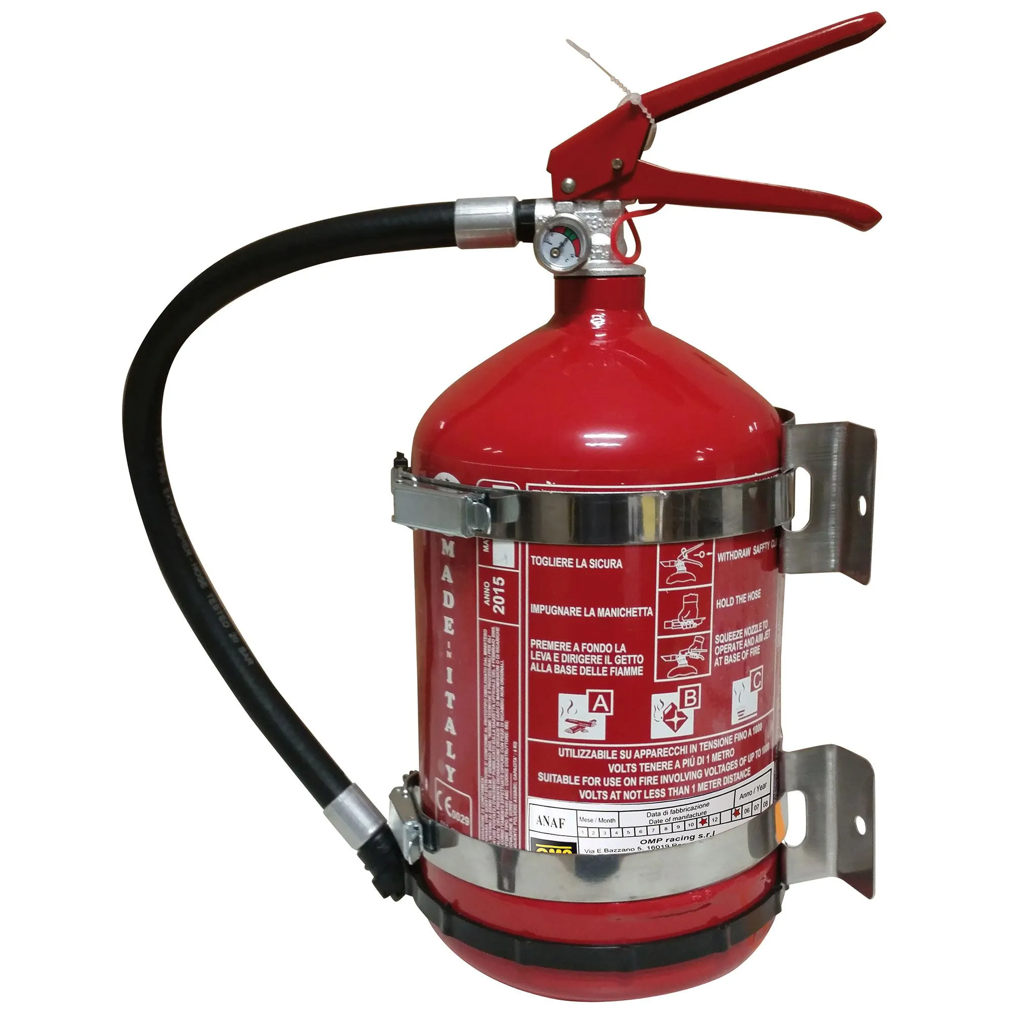 Αυτός ο πυροσβεστήρας ξηρής σκόνης 4 κιλών είναι ιδανικός για χρήση σε pit ή εργαστήρια. Διαθέτει ατσάλινο δοχείο με βραχίονες στήριξης από ανοξείδωτο ατσάλι και ιμάντες γρήγορης απελευθέρωσης. Ένας εύκαμπτος σωλήνας κατευθύνει τη ροή της σκόνης.