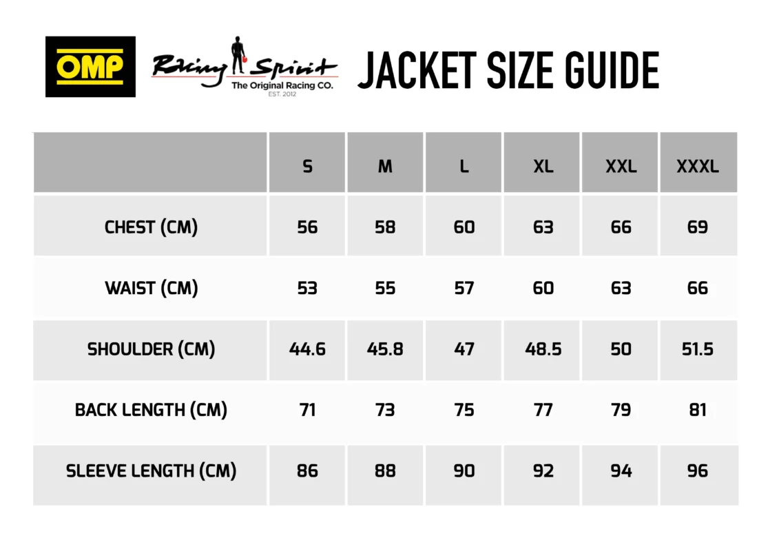 Μεγέθη Μπουφάν OMP / Racing Spirit