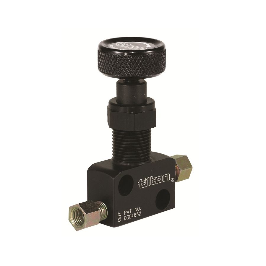 Αυτή η βαλβίδα βιδωτού τύπου από την Tilton προσαρμόζεται στη γραμμή φρένων και επιτρέπει λεπτές ρυθμίσεις για ακριβή μείωση της πίεσης.